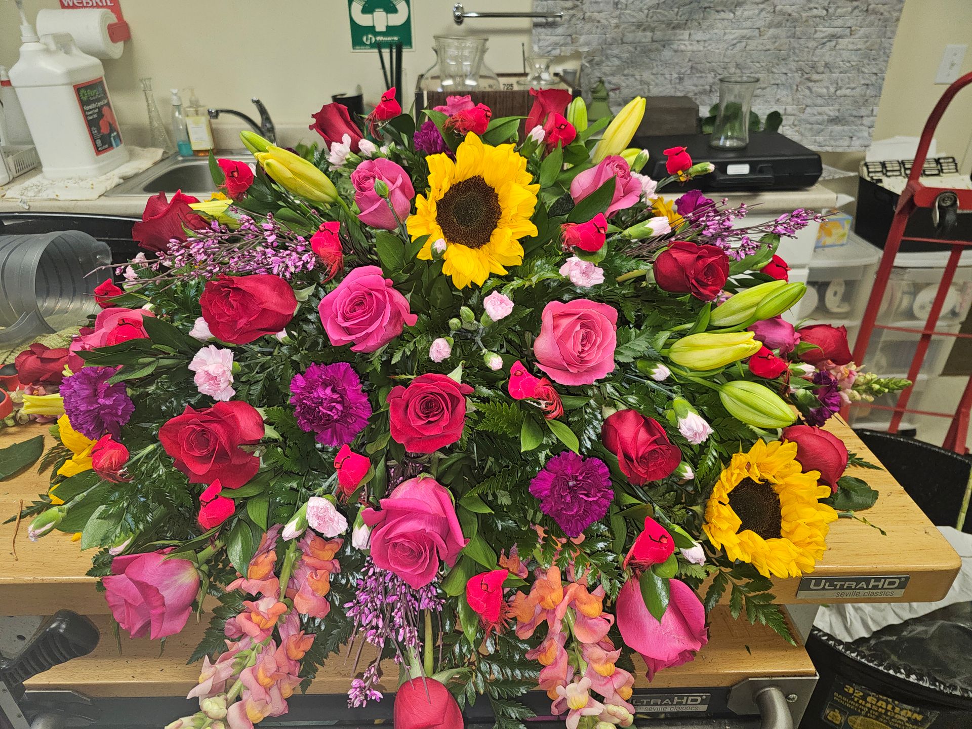 Sunflowers, Daisies, Glads, Carns, Spider Mums, and Roses